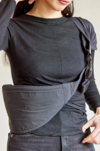 Simple āseat, pull, and liftā motion allows parents to place the baby on the hip seat in just about 5 seconds.