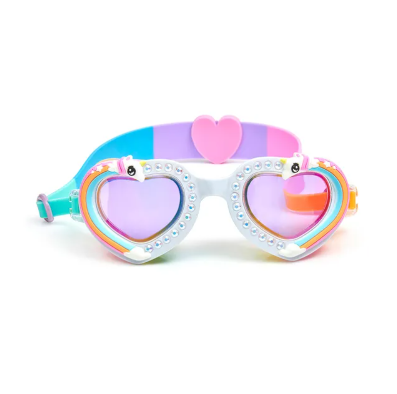 You’ll be taking that water slide for a ride looking iridescent and magical in Pony Ride Rainbow. Kids swim goggles with sparkle! Sunshine sends the rain away but magic makes double rainbows come out to play. Shimmer even brighter with rhinestones and a glossy UV lens to finish.