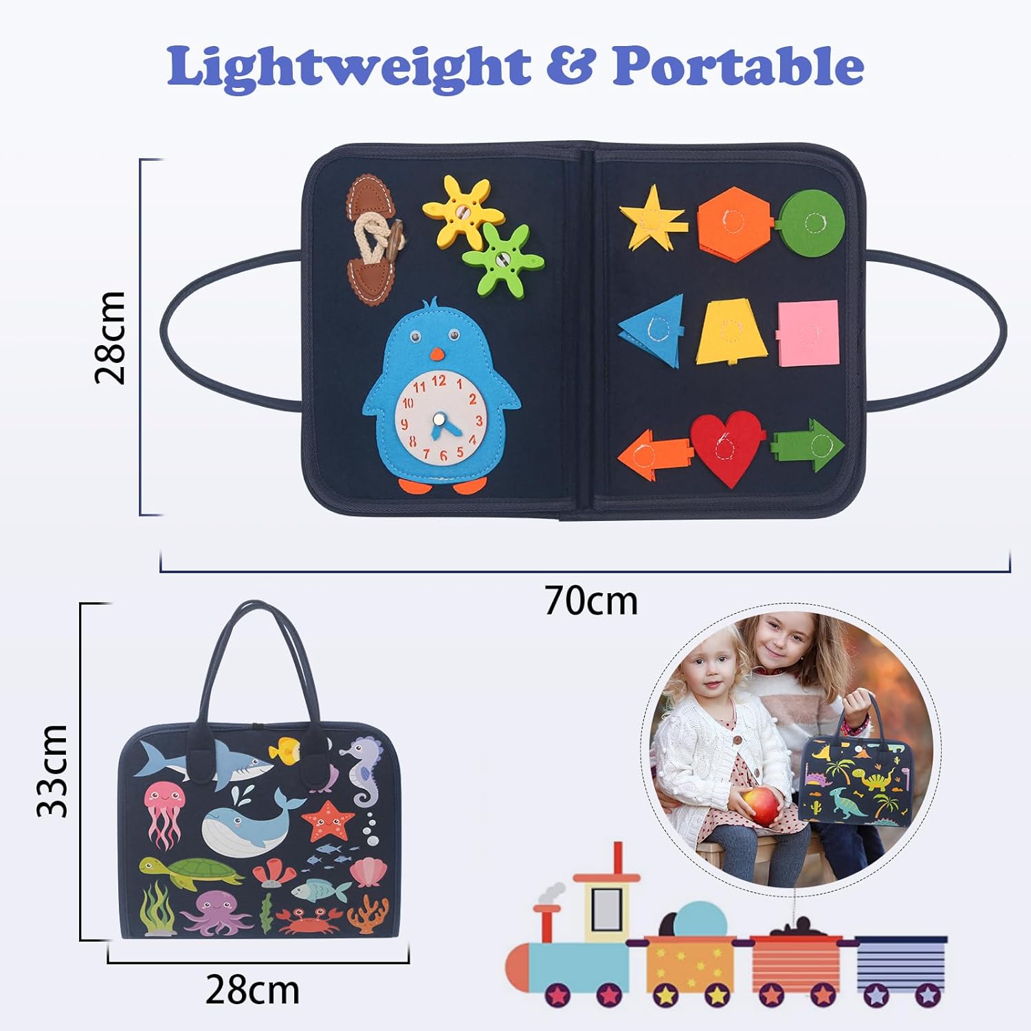 The lightweight and portable design allows children to carry it anywhere, making it ideal for travel, car rides, or quiet playtime. This board is simple to use and helps little ones build independence and important life skills.