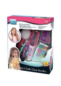 Totally Girlie Hair Chalk Glam Studio Styling Kit creates the latest hair trends making hair color application fun and mess-free wild colors that are easy to wash. Easy Diy Hair Chalk Studio comes with 4 color chalks, hair ties and accessories 4 x color hair dye chalks 2 x lip gloss 1 x blush and comb as well as a mirror 12 x hair ties including instructions. Easy D Hair Studio Girls Funny Lip Gloss Mirror with Chalk Studio.